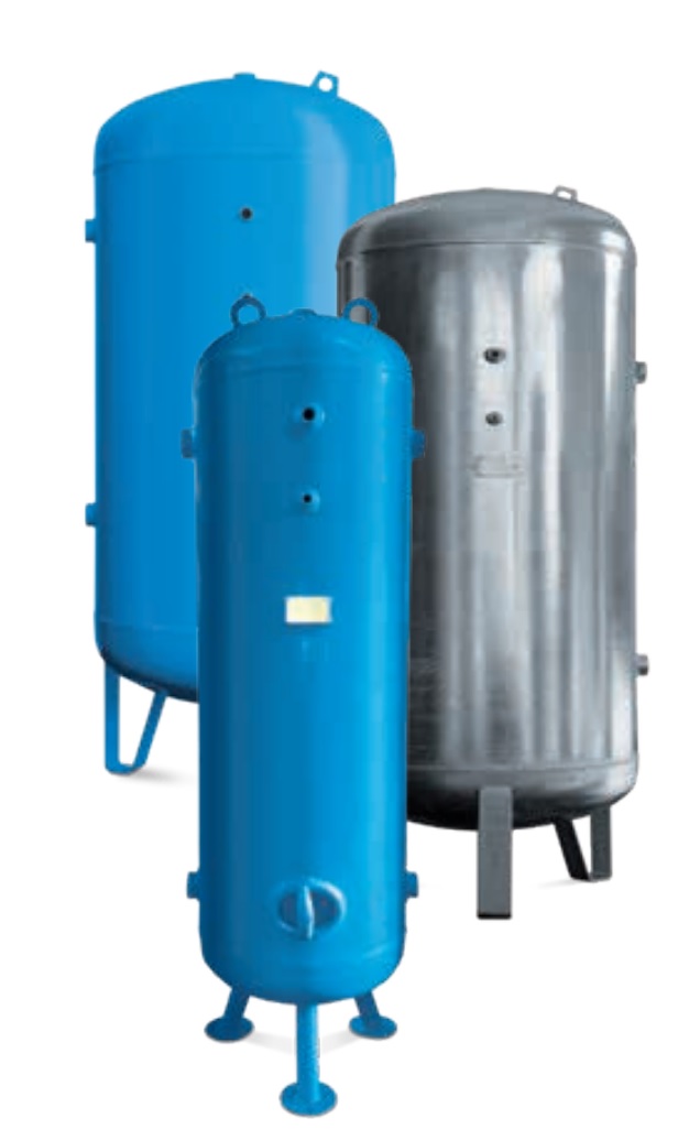Sve vertikalne boce su napravljene od karbonskog čelika i premazane standardnim plavim premazom Ral5015. Opremljene su manometrom i sigurnosnim ventilom. Limiti radne temperature za boce do 1000 litara su -10 do +100oC, a za boce od 1000 i više litara su 0 do +50oC. Boce su italijanske proizvodnje i napravljene su uz poštovanje međunarodnih standarda i prateće zakonske regulative. Po preporuci proizvođača, ispod svake boce je potrebno instalirati ozračivač kondenzata za automatski odvod kondenzacije.